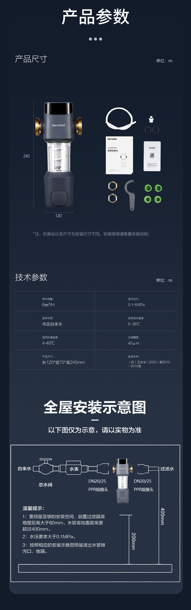 適用水源:市政自來水適用水壓:0.1-1MPa